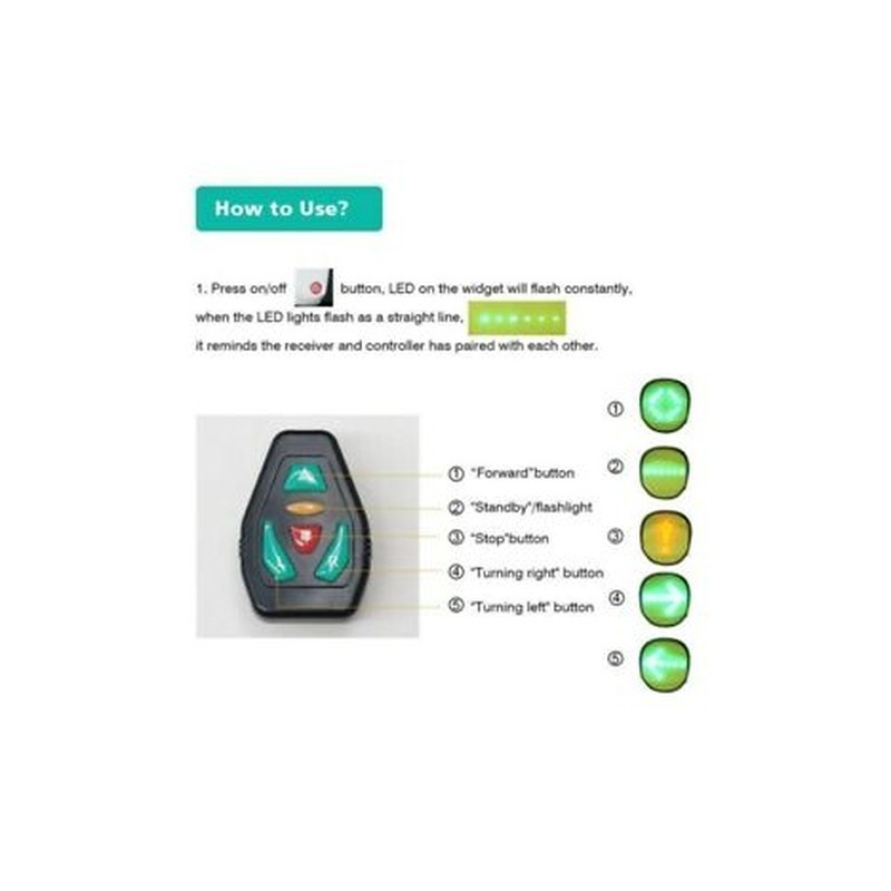 Wirelessly control 4 signals (Left, Right, Forward, Stop), reminding passengers and drivers to keep distance.