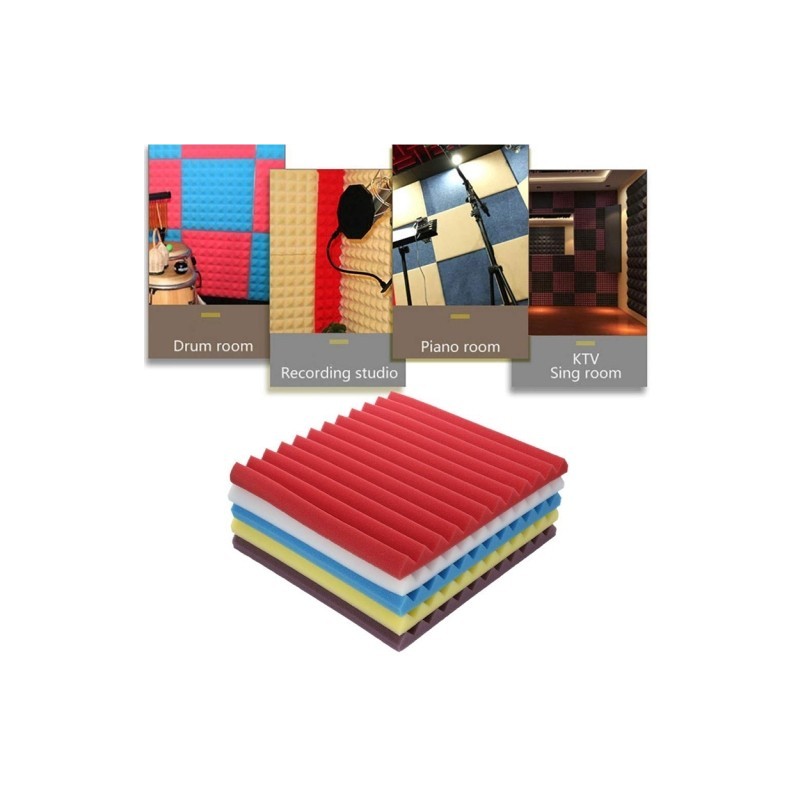 Applied to: Studio, Piano room, Drum room, Anchor`s room, Home Theater, KTV, Meeting rooms, Instrument rooms, etc. soft sponge, no dust, high density; Pyramid sound-absorbing sponge with beautiful appearance and good acoustic characteristics, its greatest feature is: due to its pyramid shape, it provides little diffusion, it makes you sound more dynamic. It may, for example BASSTRAP combined colour:Blue/Purple/Red/White/Yellow Material:High density flame retardant sponge size:30x30x2.5cm Package Contents: 1 x Soundproof foam