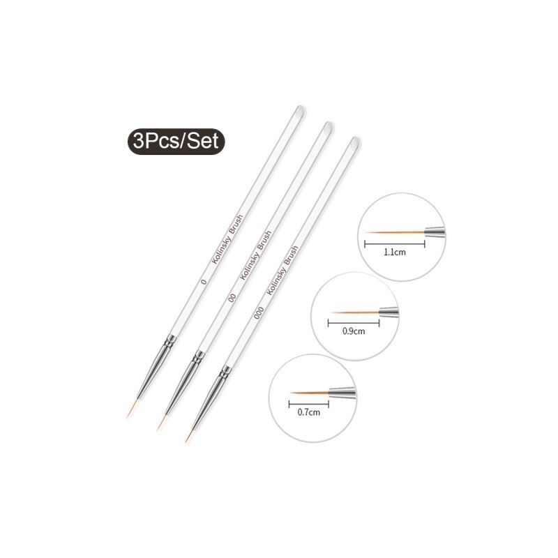 3Pcs Acrylic French Stripe Nail Brushes Set Manicure Ultra-thin Line Drawing Pen UV Gel Painting Brush Nails Accessories Tools