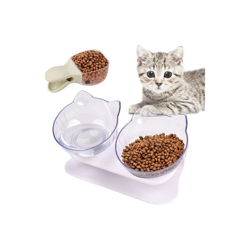 Csúszásmentes kisállat macska tál kutyatál etető 15 fokos medencével ferde szájú dupla tál kutyatál kismacska kutyaeledeltál macskatál