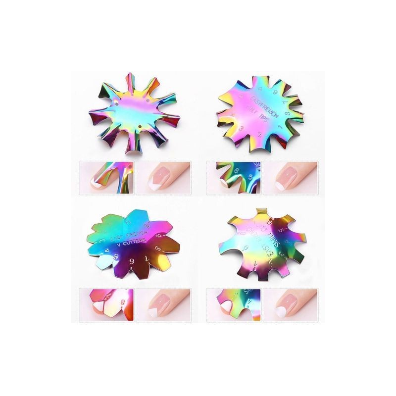 Professional Colorful Nail Cutter Mold Stencil French Cutter V-Curve Line Manicure Nail Edge Stainless Steel Nail Trimmer Tips Nail Art Styling Tools for Salon Household