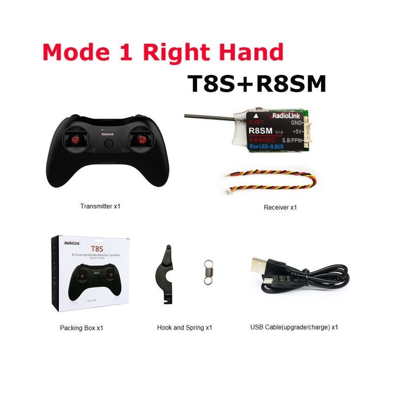Szín: 1. mód R8SM-mel - Radiolink T8S 2.4G 8 csatornás rádiós távadó vevővel R8EF Game Shape Controller 2000m FPV Drone