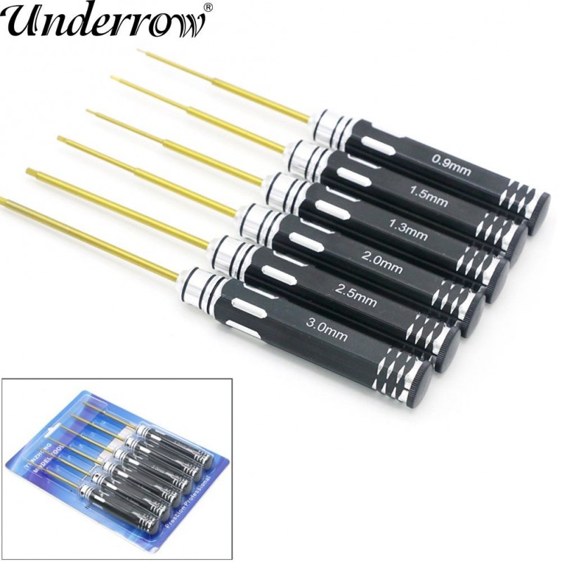 RC Tools 6 Pcs Hex Screw Driver Set Titanium Plating Hardened 0.9 1.3 1.5 2.0 2.5 3.0mm Screwdriver For Rc Drone Rc Toys (1 set)