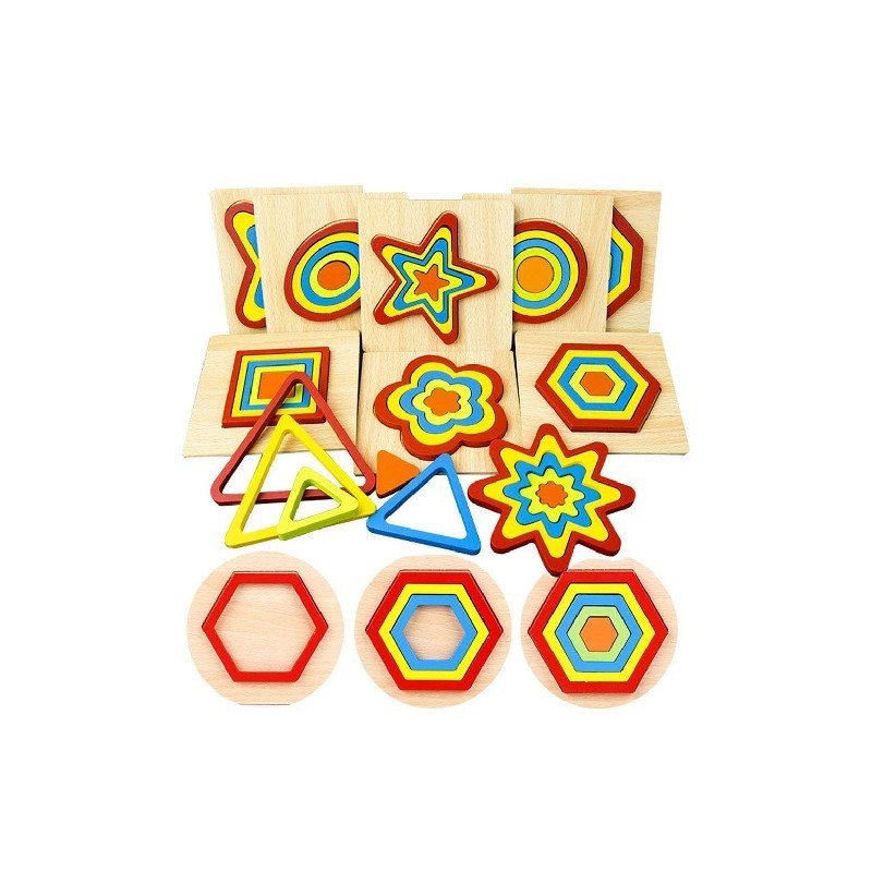 Színes gyermekajándékok Montessori Tangram 3D fa építő fa kirakós társasjáték geometriai kirakós játék