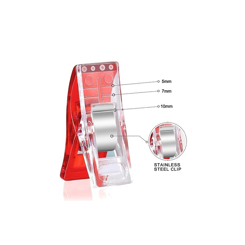 5. Made of high quality plastic and metal, this clip base is easy to hold up the layers and make the cloths level and flat. Also, it will never bump your fingers or damage your materials.