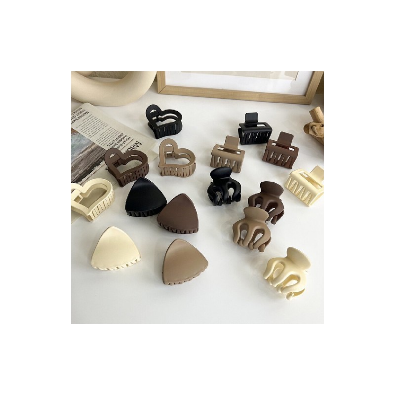 Korean Simple Matte Hair Clips Geometric Square Heart Triangle Crab Hair Clips Black Khaki Beige Women Girls Hairpins Barrettes