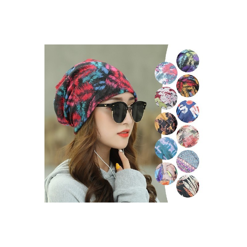 Fashion Women Hip Hop Hats Street Style Floral Print Beanies Caps Women Chemotherapy Cap Pile Pile Cap Autumn Women Scarf Caps