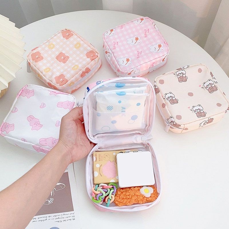 1PCS Women Girls Kawaii Cosmetic Makeup Storage Bag Travel Napkin Sanitary Pads Bag Mini Data Cables Card Coin Pouch Organizer