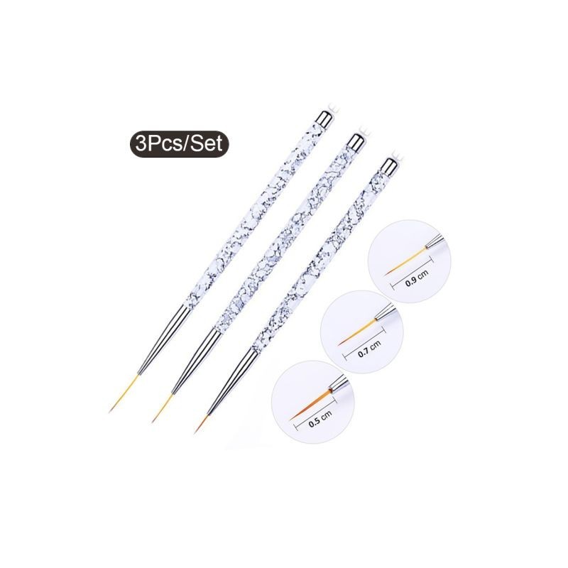 3db Akril francia csíkos körömkefék szett Manikűr Ultravékony vonalrajzoló toll UV gél festőkefe Köröm Kiegészítők Eszközök