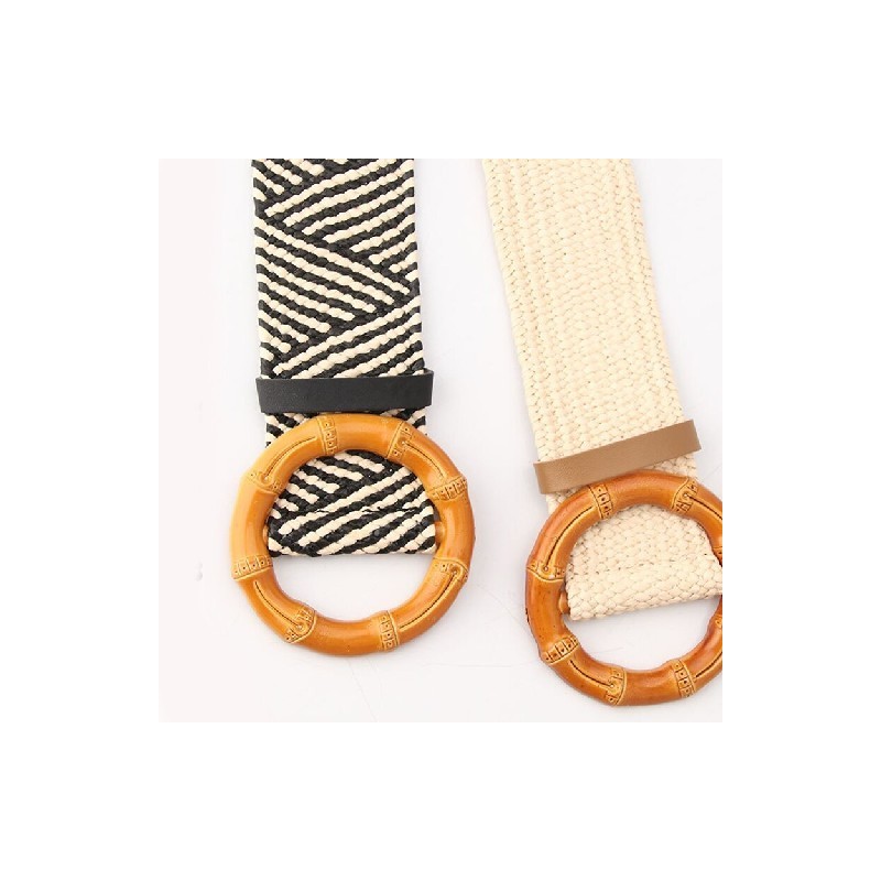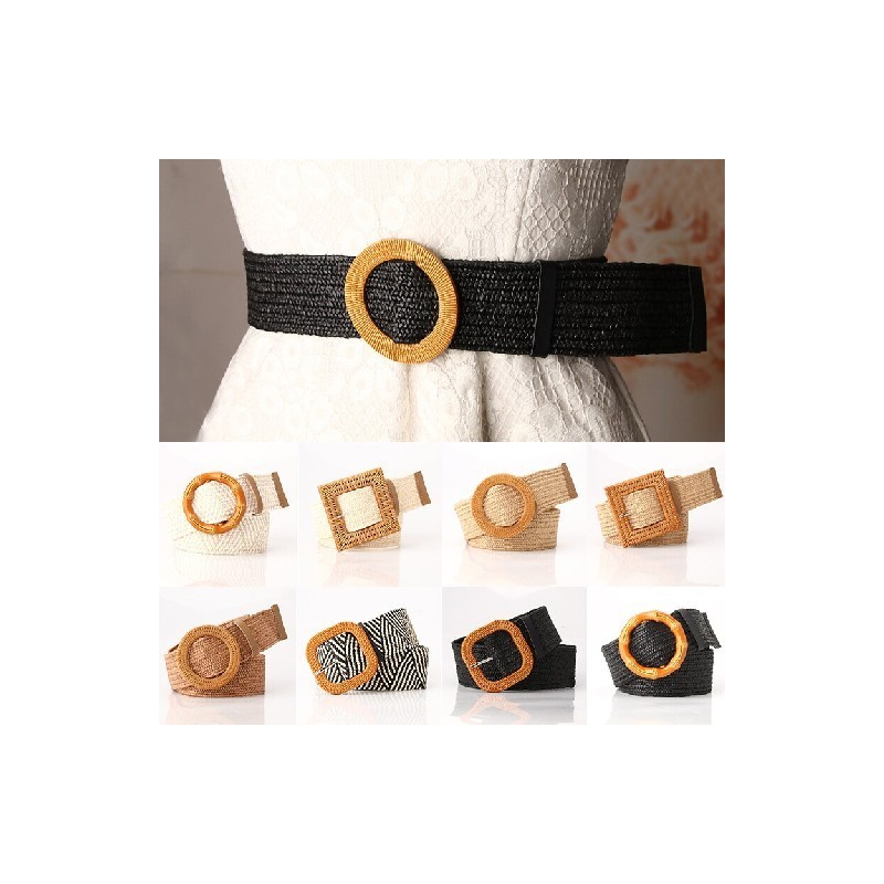 Ingyenes szállítás Bohém széles öv női hamis szalma szőtt öv kerek négyzet alakú fa csatos deréköv ruha kabát farmer derékpánt