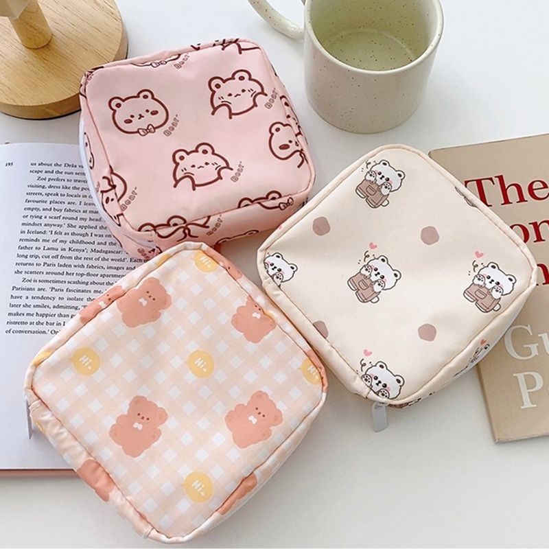 1PCS Women Girls Kawaii Cosmetic Makeup Storage Bag Travel Napkin Sanitary Pads Bag Mini Data Cables Card Coin Pouch Organizer