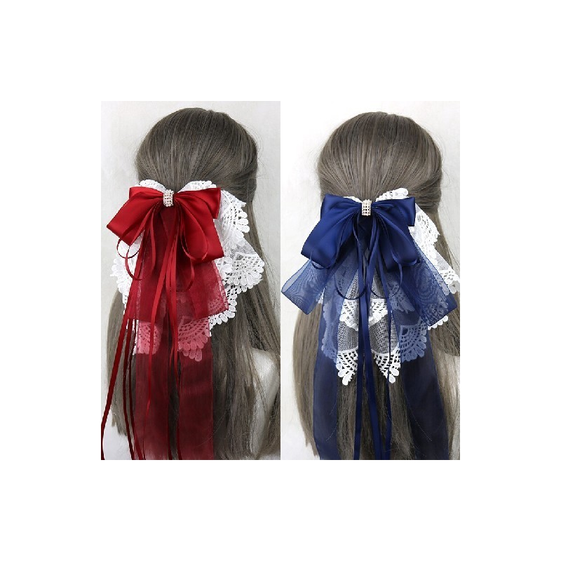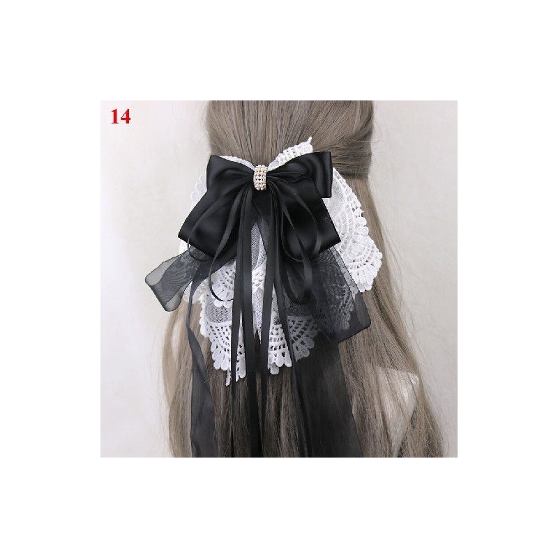 Japanese Maid Princess Lolita Lace Oversized Bow Hairpins Gorgeous Embroidered Lace Ribbon Hair Clips Ponytail Cosplay Headdress