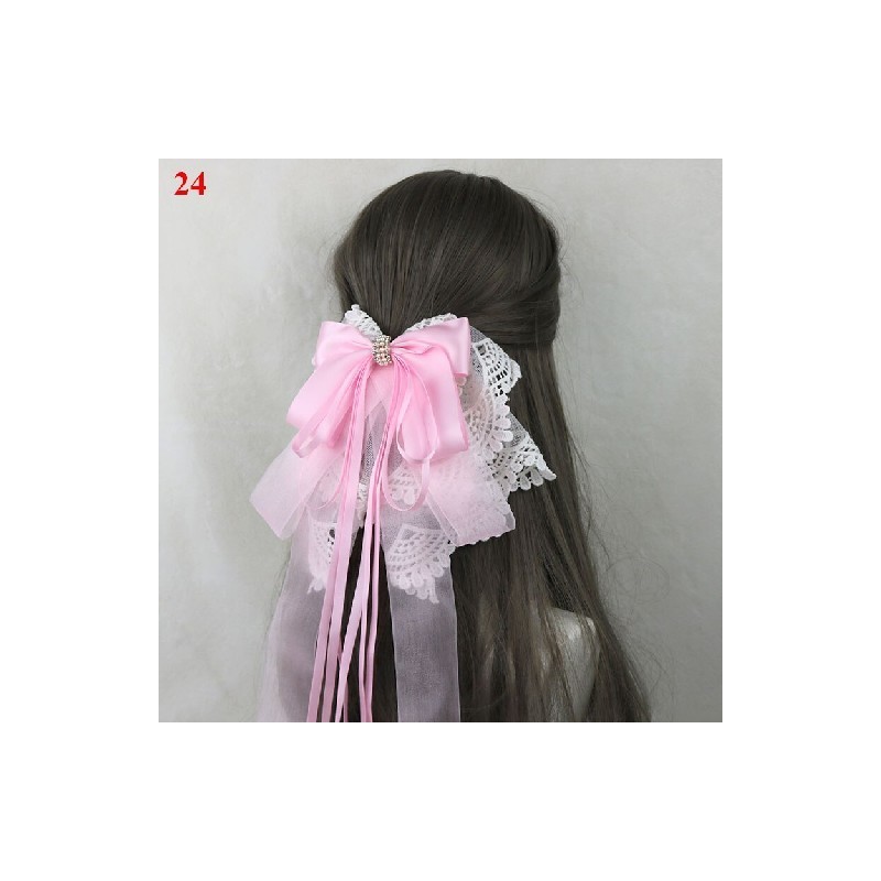 Japán szobalány-hercegnő Lolita csipke, nagyméretű masni hajtűk, gyönyörű, hímzett csipke szalag hajcsat lófarok cosplay fejdísz