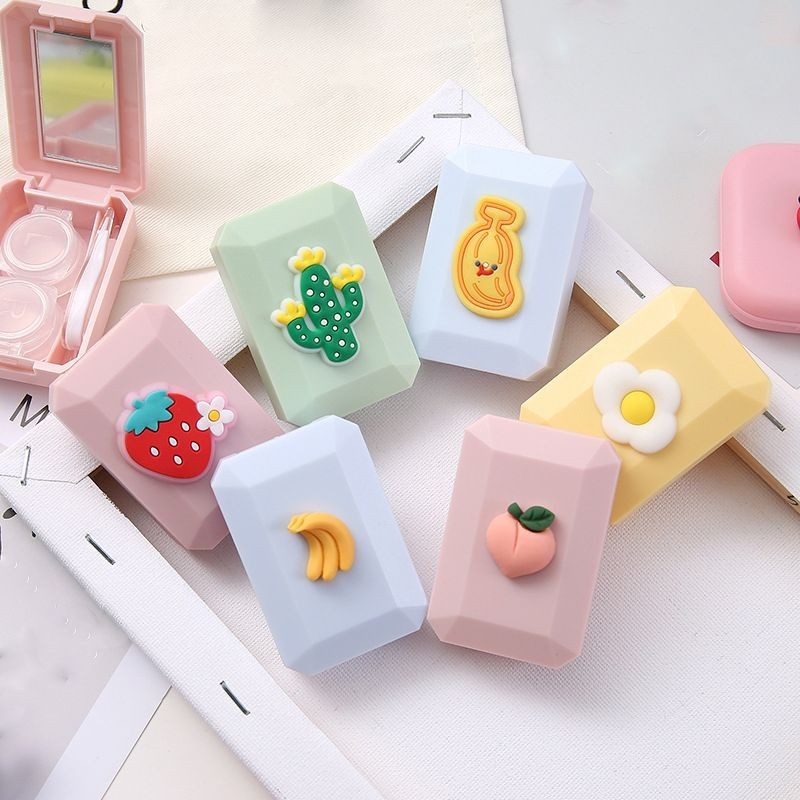 1PCS Cartoon Fruit Contact Lens Cases with Mirror Cute Contact Lens Box Square Women Travel Contact Lenses Kit Container Case