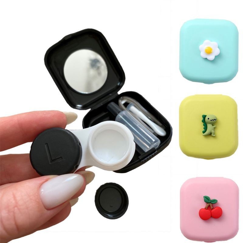 Mini Contact Lens Case Solid Colour Lovely Travel Kit Pocket Women Easy Carry Mirror Lenses Box Container with Tweezers Suction