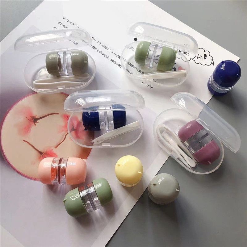 Portable Cute Mini Women Contact Lens Box Girl Simple Small One Vertical Double Head Contact Lenses Container Beauty Pupil Cases