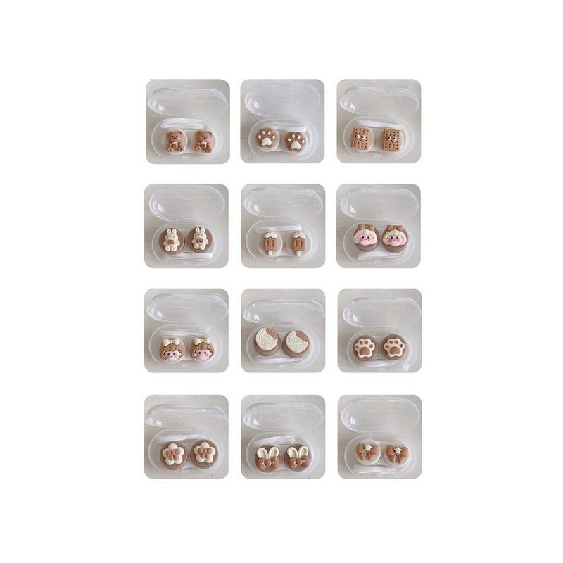 Lovely Warm Cute Contact Lens Case Women Cute Cartoon Coffee Color Lense Container Portable Travel Set Eye Lenses Storage Box