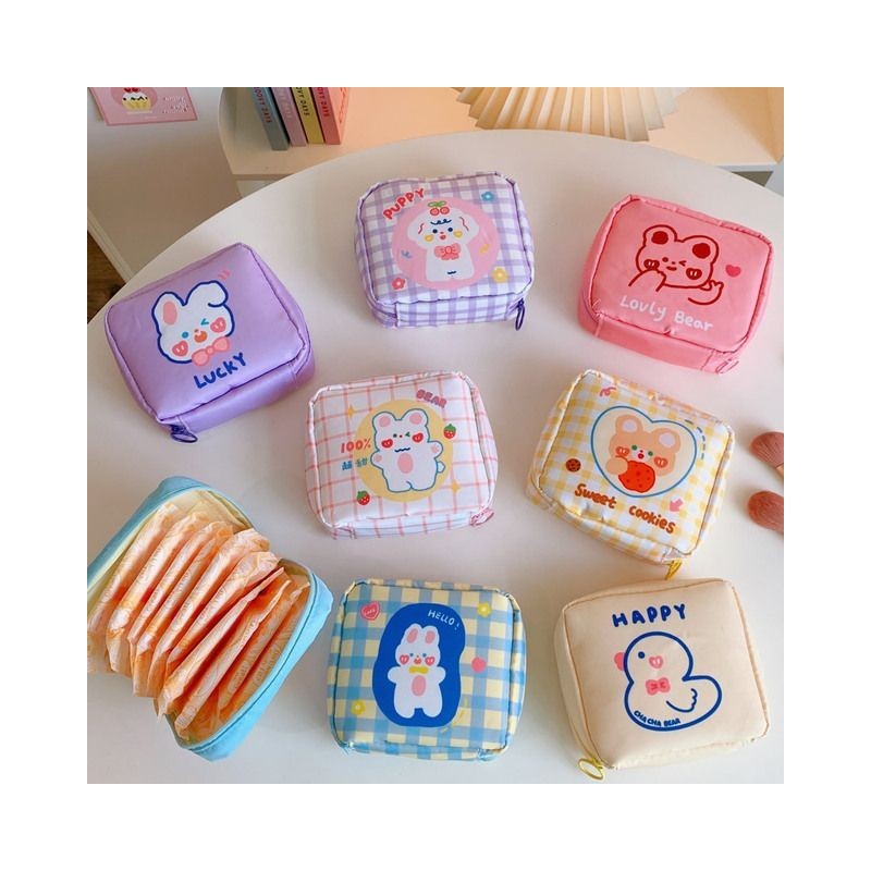 Waterproof Cosmetic Bag Pouch Cute Cartoon Women Lipstick Makeup Storage Bags Kawaii Mini Cute Portable Sanitary Napkin Pad Bag