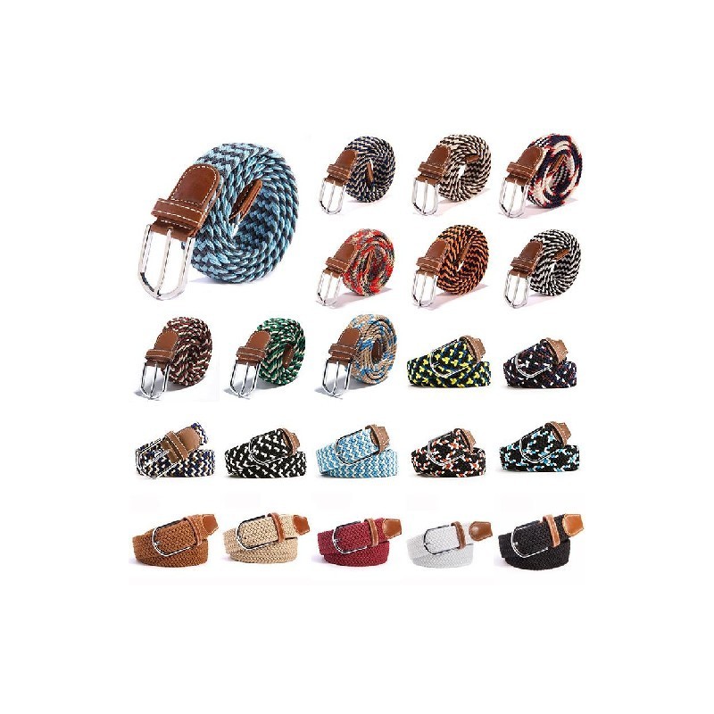 Free Shipping Canvas Braided Elastic Belts For Women Men Young Student Pin Buckle Woven Belt Expandable Plain Webbing Strap Belt