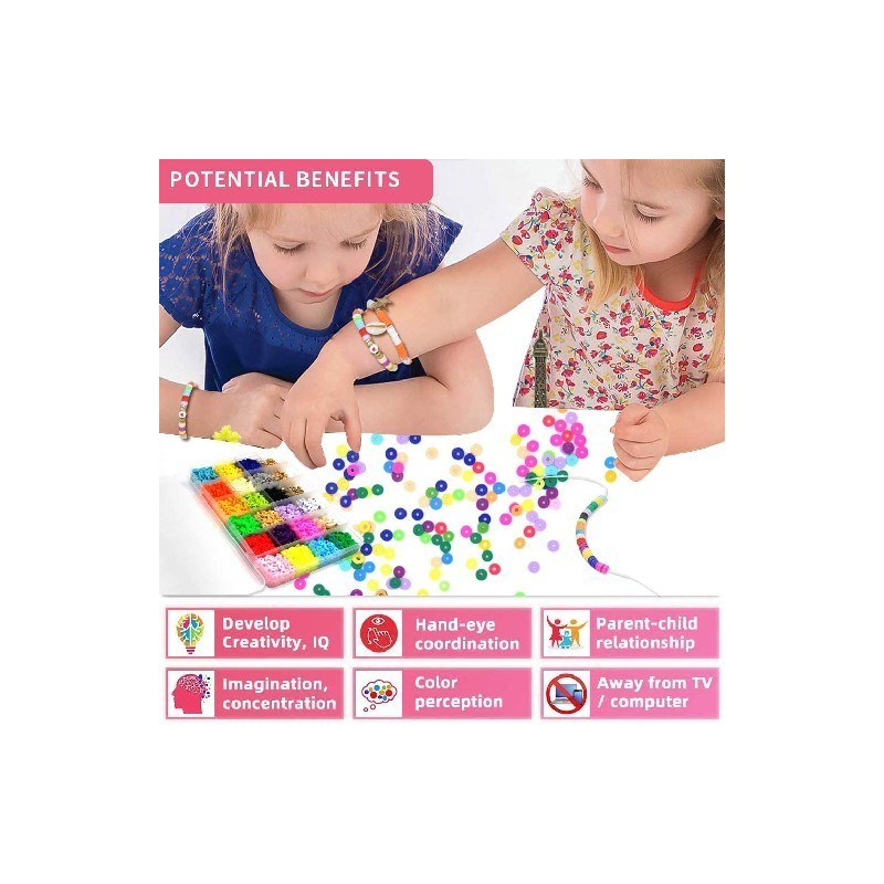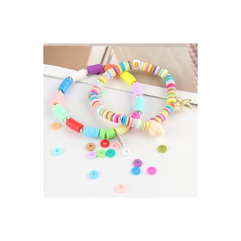 4800Pcs Flat Round Polymer Clay Spacer Beads Kit Charms Elastic Cord Lobster Clasp Box for Jewellery Making DIY Bracelet Set