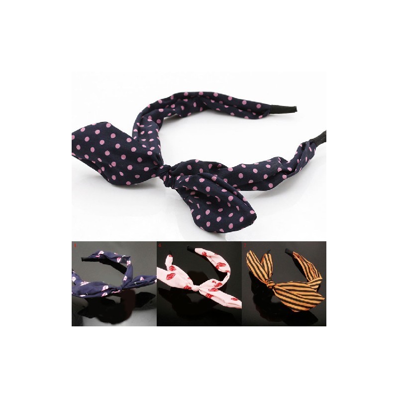 Cute Rabbit Ears Headband Hair Hoop Floral Dot Striped Non-Slip Hairband Women Makeup Washing Face Bow Turban Hair Accessories