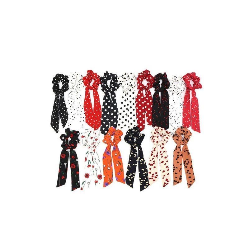 Bohemian Polka Dot Floral Printed Ribbon Bow Hair Scrunchies Women Elastic Hair Band Scarf Hair Rope Ties Girls Hair Accessories