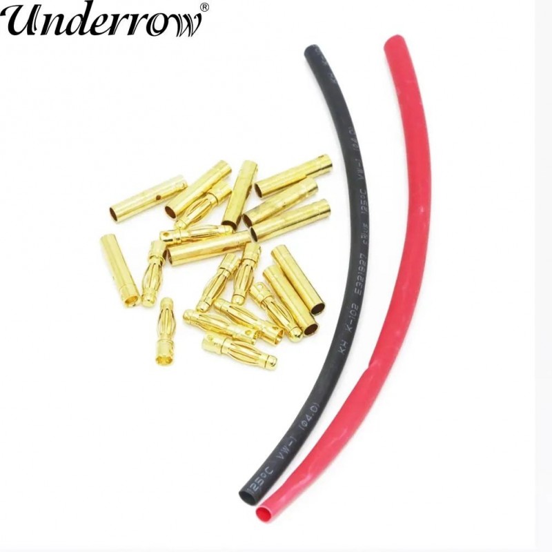 10 Pairs 2.0mm 3.0mm 3.5mm 4.0mm Gold Plated Bullet Banana Plugs Male Female Connectors with 20CM Heat shrinkable tube