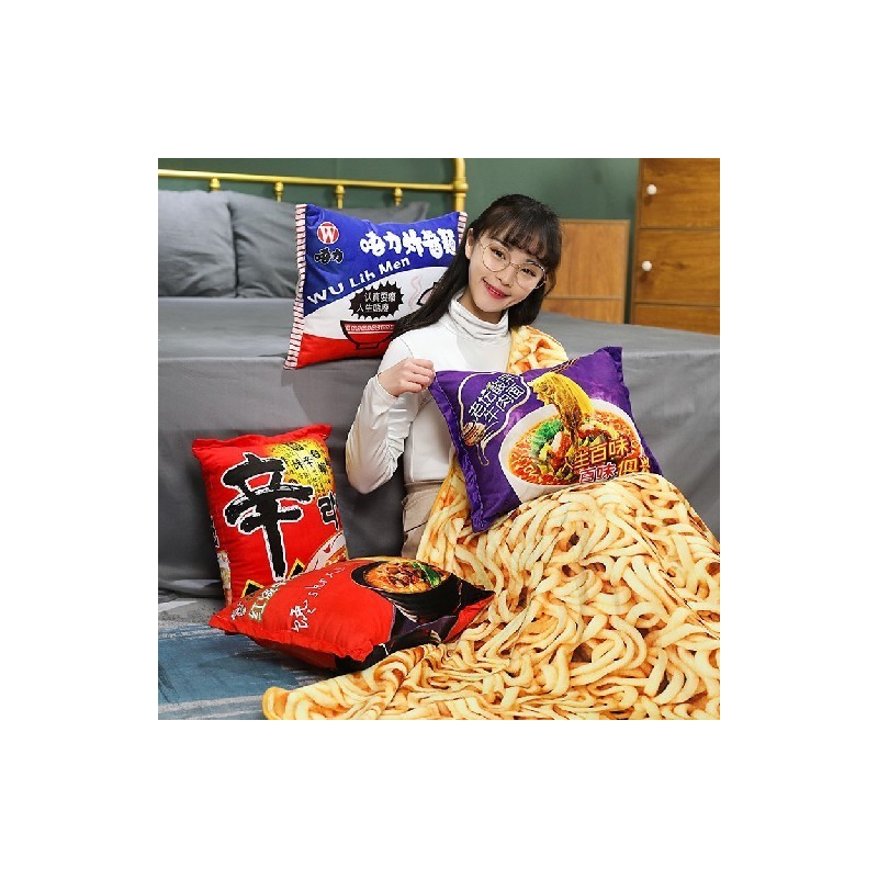 45CM Kawaii Plush Instant Noodles Pillow Stuffed Simulation Fried Noodle Cute Food Plush Cushion with Blanket Plushies Dolls