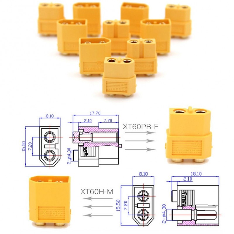 5 /10 /50 Pair Amass XT60-P Nylon Plug XT60PB Connector Male & Female PCB Dedicated for PCB Board For RC Models Plug