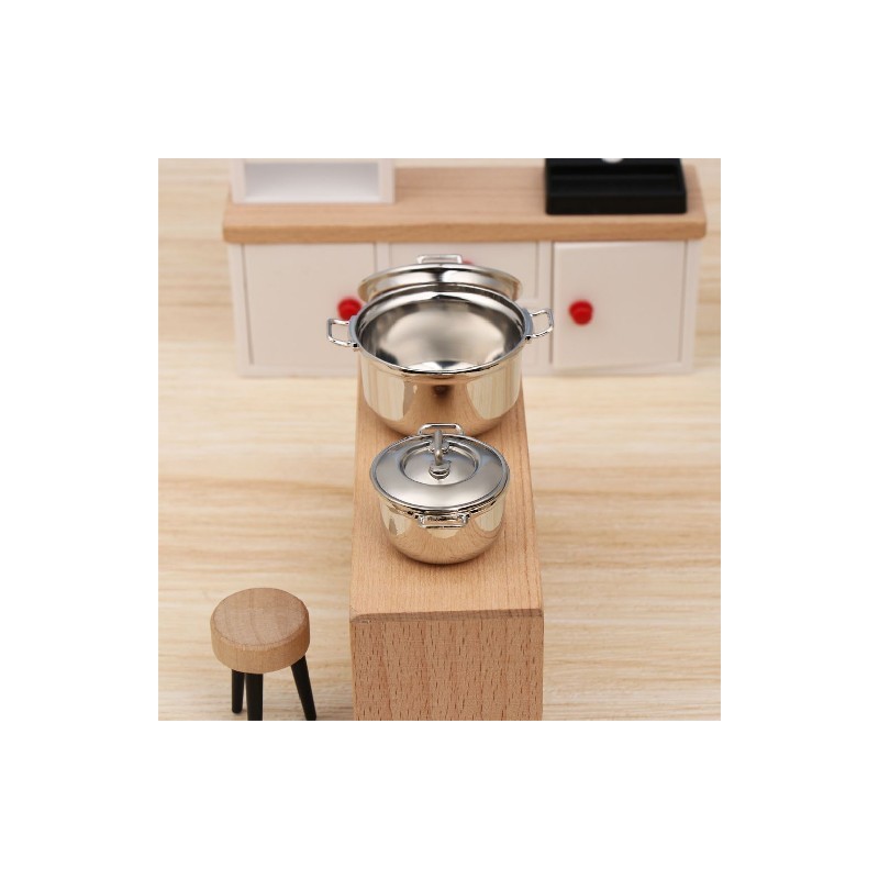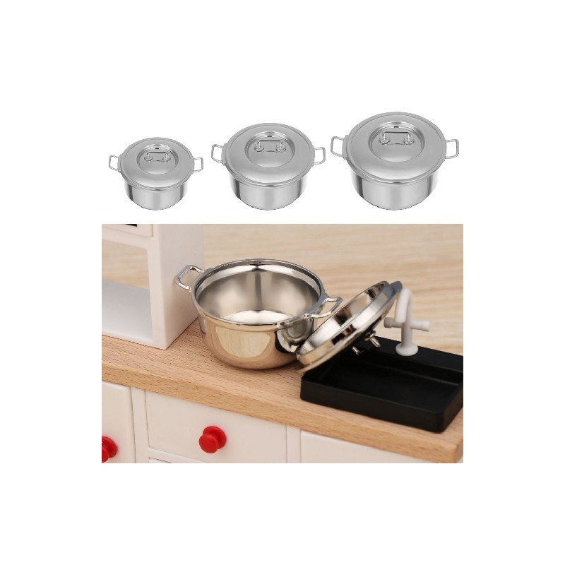 1/12 Scale 3 Size Miniature Soup Pot With Cover Dollhouse Accessories Playing House Mini Cookware