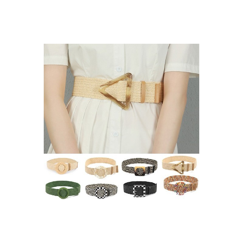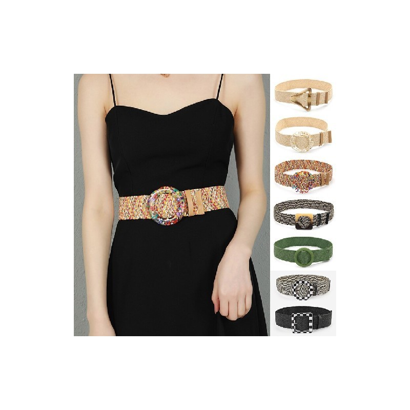 Bohemian Elastic Belt For Women Braided Wide Belt PP Straw Designer Women Dress Shirt Waist Seal Belt Decorative Waistband Belts