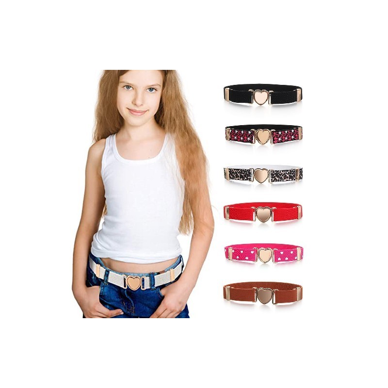 Kids Elastic Belts Girl Stretch Waist Belt Adjustable Heart Belt Uniform Belt for Teen Kids Girls Dresses