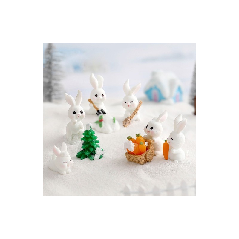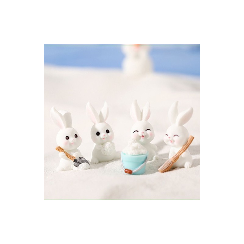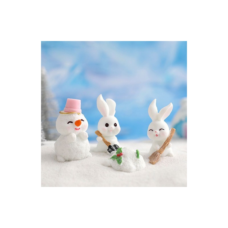 Cute Garden Ornament Desktop Fairy Garden Snowman Bunny Miniature Micro Landscaping Snow Scene Rabbit Figurine