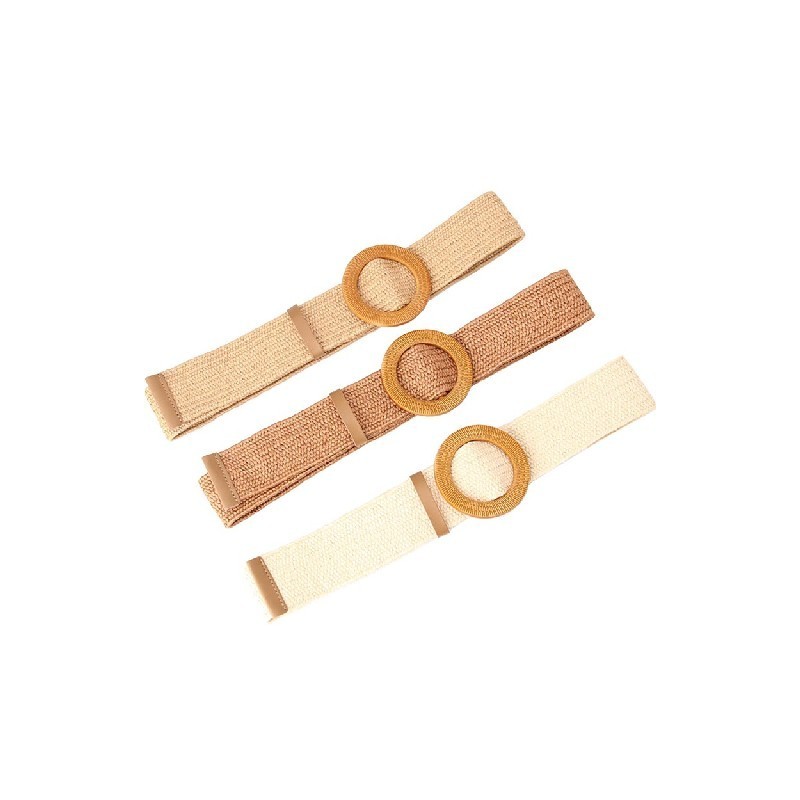 Ingyenes szállítás Bohemian széles öv női hamis szalma szőtt öv kerek négyzet alakú fa csatos deréköv ruha kabát farmer derékpánt