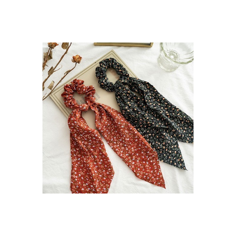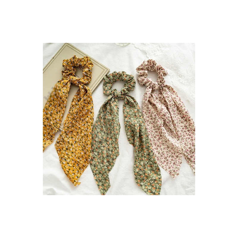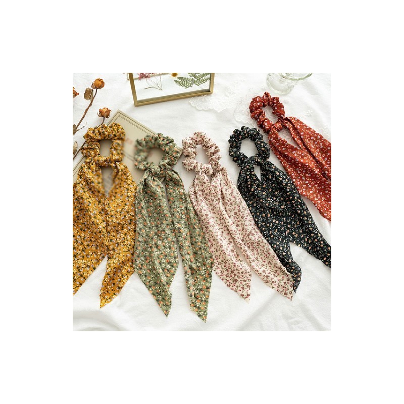 DIY Floral Print Long Hair Scarf Ribbons Scrunchie Women Elegant Elastic Hair Bands Rubber Band Hair Accessories Ponytail Holder