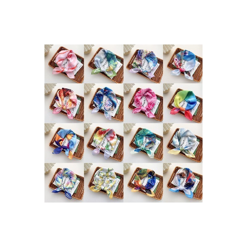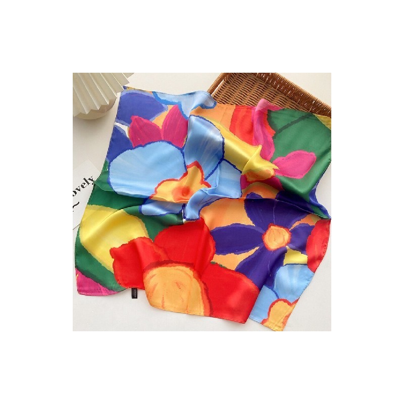 Soft Silk Satin Square Scarf Foulard Hijab Bandana Colorful Graffiti Rainbow Luxury Small Neck Scarf Female Head Scarves Shawls