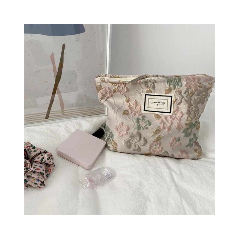 1PCS Small Fresh Makeup Bag Embroidery Flower Cosmetic Bag Female Literature Art Simple Pencil Case Large Capacity Storage Bags