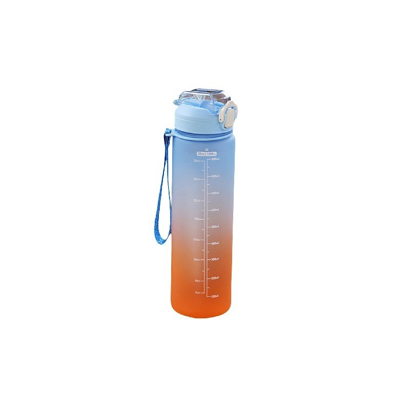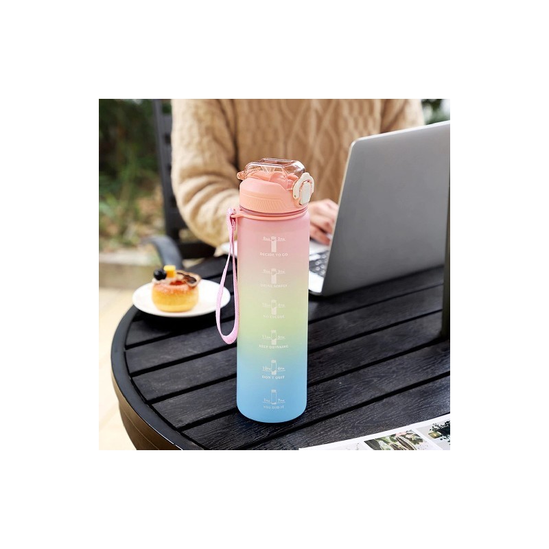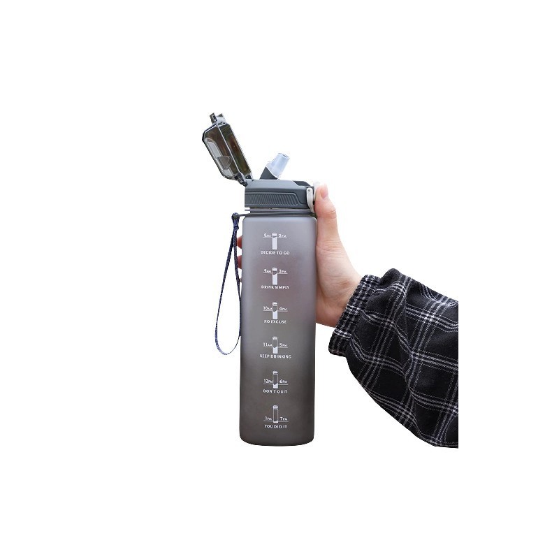 The lid is made of high quality reusable copolyester PP plastic. BPA-free water bottles are non-toxic and harmless to your health. With motivational quotes and time markers on this water bottle, it reminds you to drink water in your daily life and fuels you while you work out so you can be more energized. The sports bottle comes with a hand strap for easy portability. Designed with a leak-proof flap so you don't have to worry about water spilling.