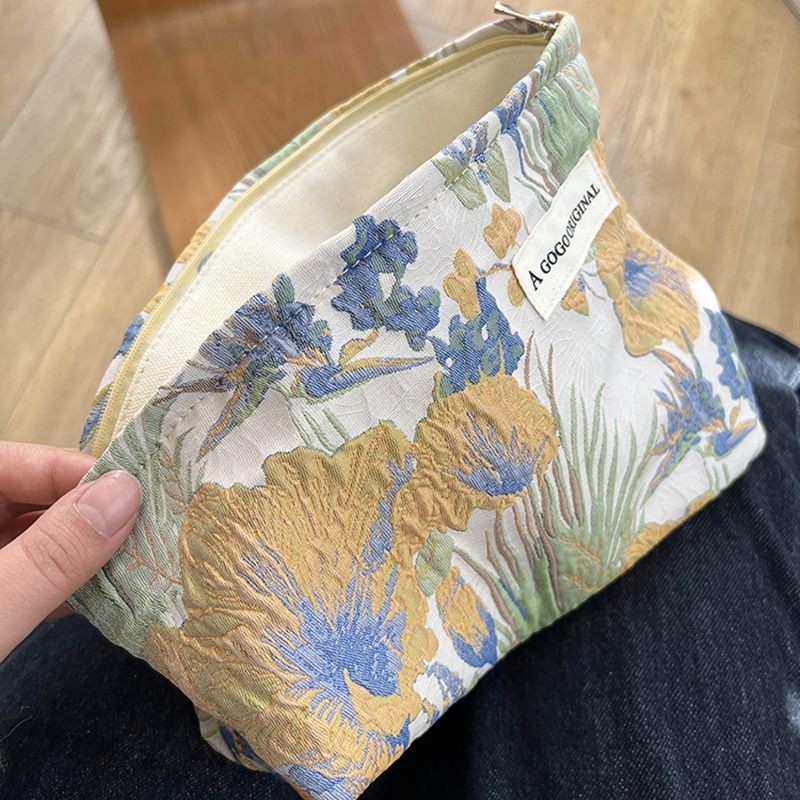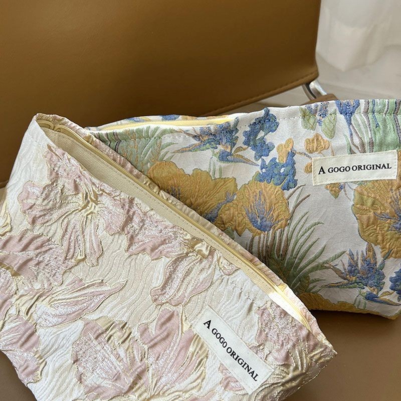 2023 New Makeup Brush Storage Pouch Organizer Jacquard Fabric Makeup Bag Floral Zipper Cosmetic Pouch Women Large Toiletry Bag