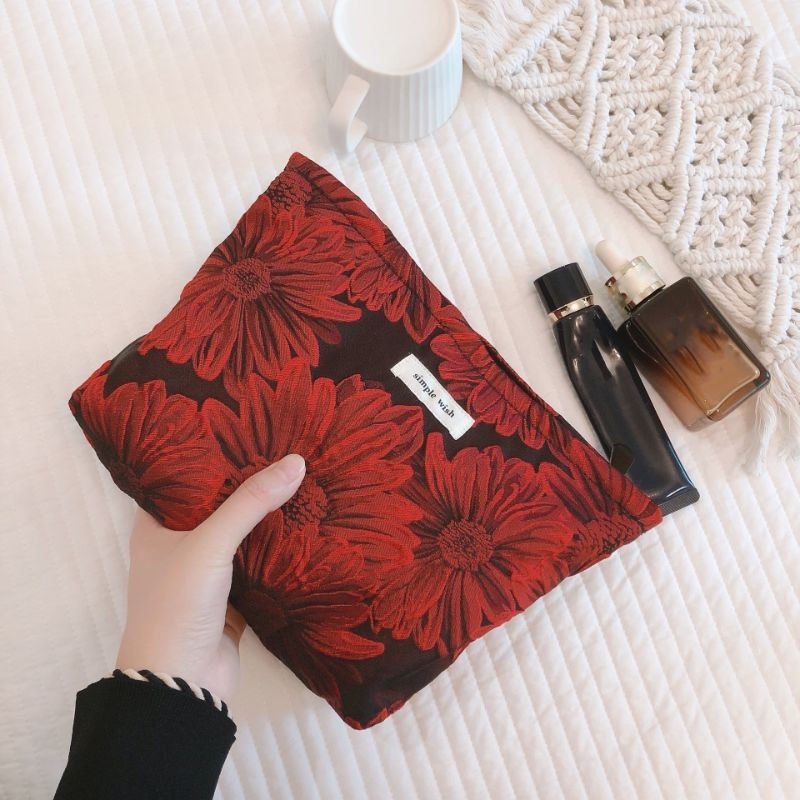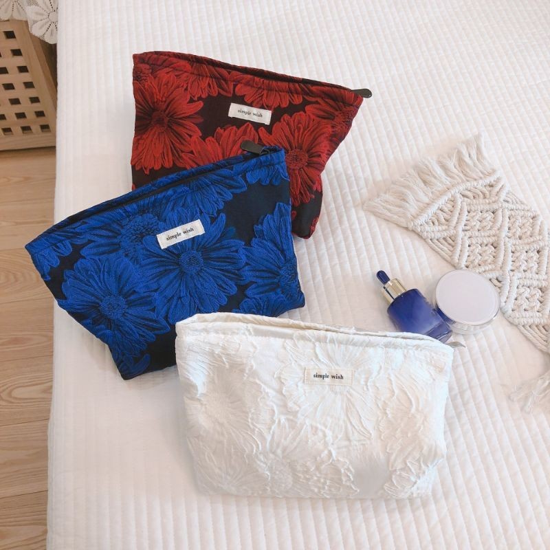 French Embossed Flowers Travel Cosmetic Storage Bag Wallet Cute Women Makeup Kits Handbags Phone Pencil Case Organizer Pouch Bag