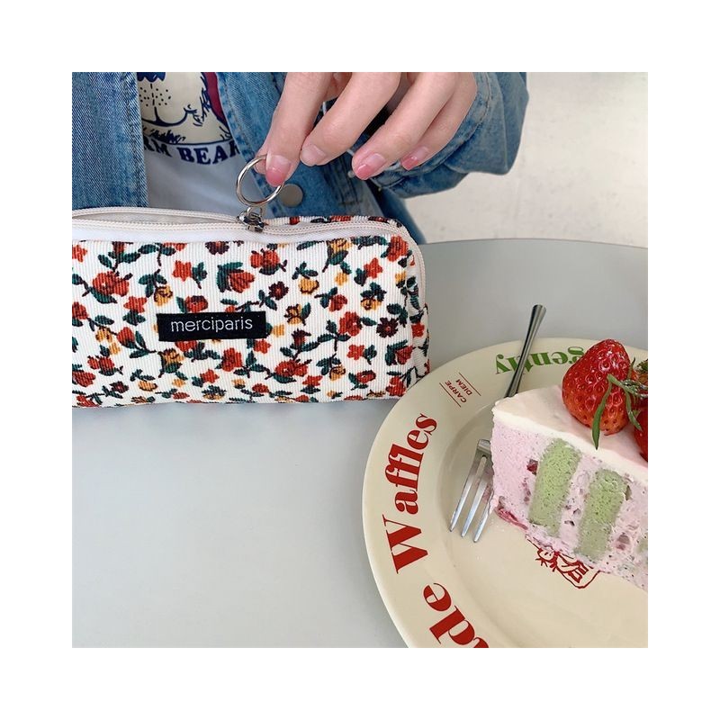 Kawaii Women Makeup Handbags Organizer Wallet Pouch Pencil Case Bag Corduroy Floral Travel Cosmetic Lipstick Purse Storage Bag