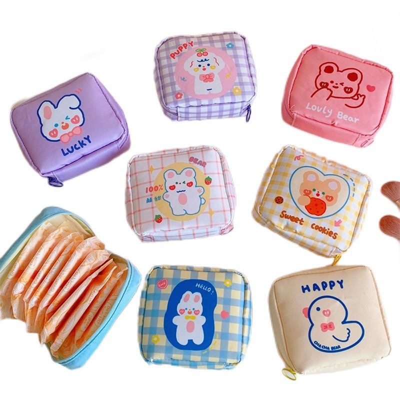 Waterproof Cosmetic Bag Pouch Cute Cartoon Women Lipstick Makeup Storage Bags Kawaii Mini Cute Portable Sanitary Napkin Pad Bag