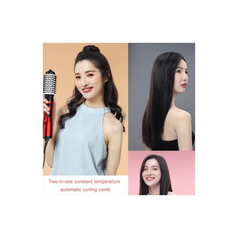 Round 2 in 1 Rotating 3 Gear Adjustable Negative Ion Hot Air Comb Multifunctional Hair Dryer Curling Straight Comb Brush Hair Styling Tools