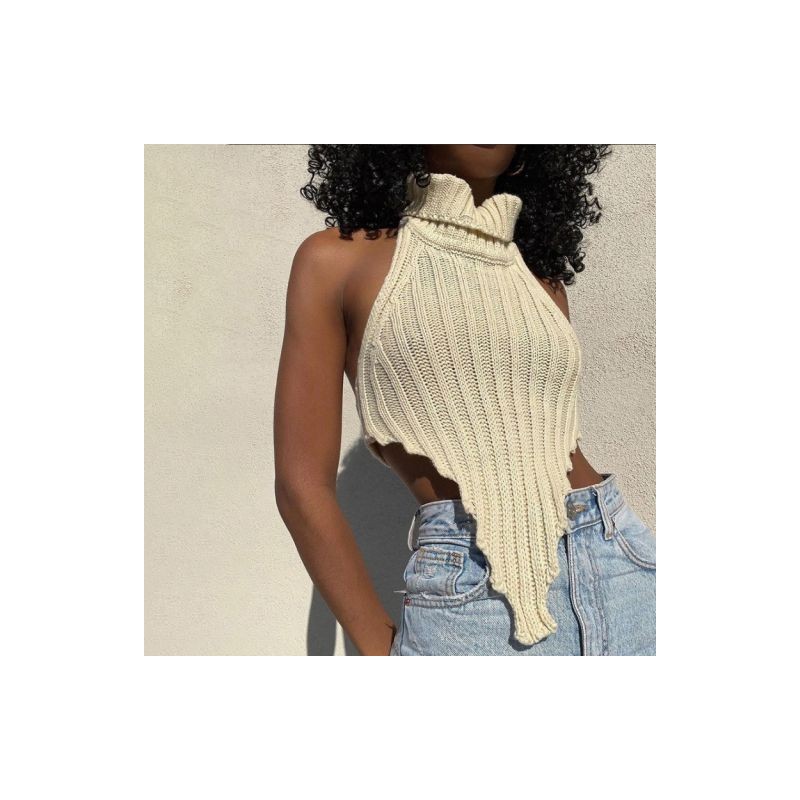 Akaily tavaszi kötött fűző felső, női, 2022, hát nélküli, ujjatlan garbó, aszimmetrikus felsők, szexi klubfekete női felső