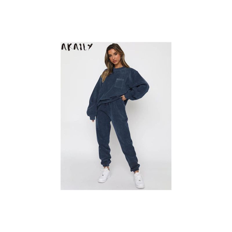 Akaily őszi fekete kordbársony 2 kétrészes készletek, női ruhák 2022-es bő, hosszú ujjú felsők és nadrágszettek női téli szettek