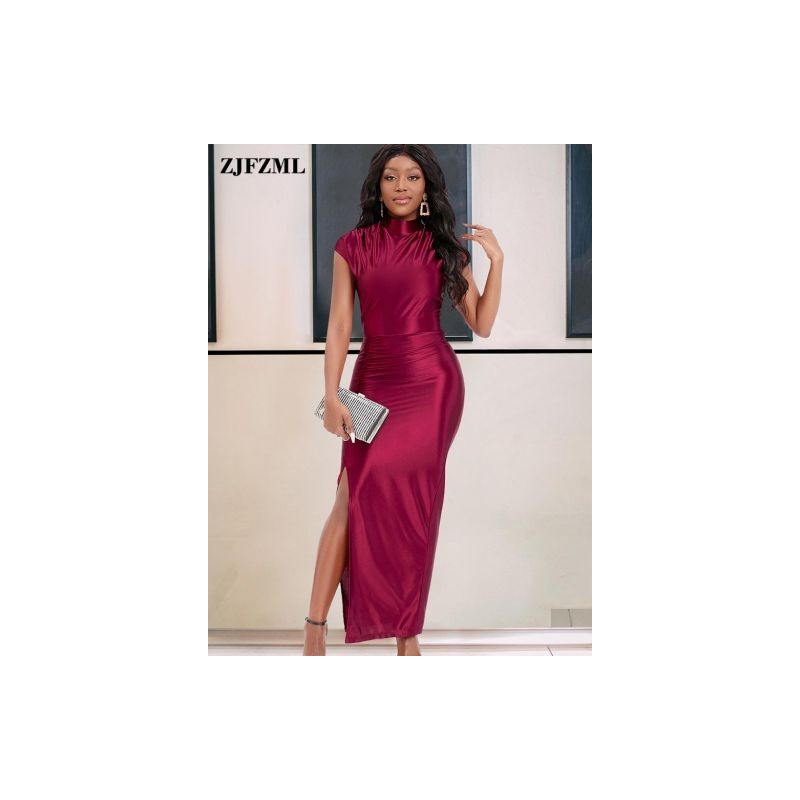 Gyönyörű szexi, oldalt magasan hasított, hosszú parti ruha, női elegáns garbó, alakformáló koktélruhák klasszikus hírességek báli ruha