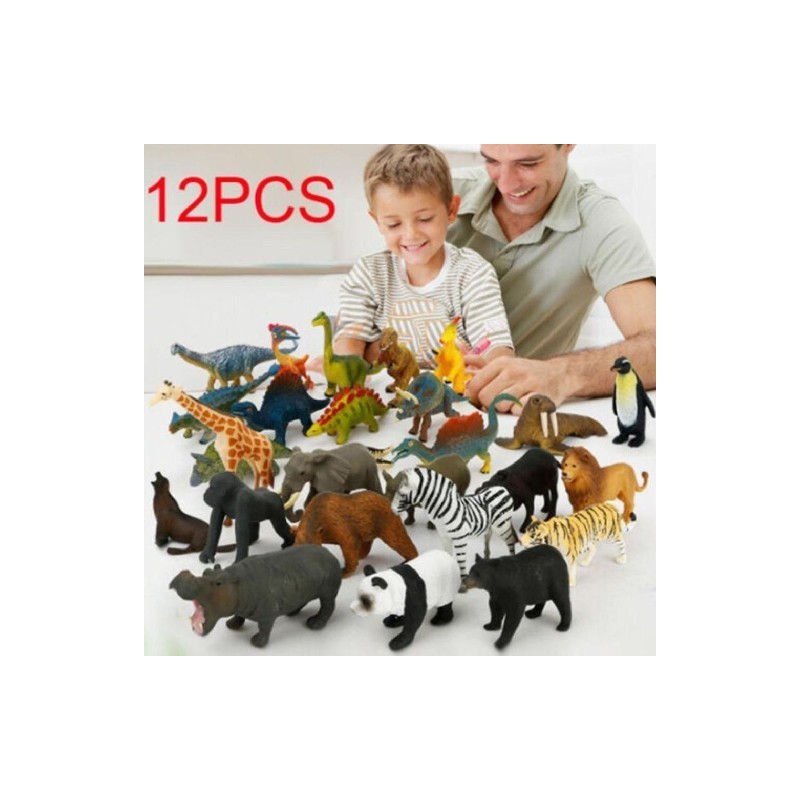 12pcs/set New Wildlife Educational Toys For Children Animal Model Simulation Animals Dinosaurs Marine