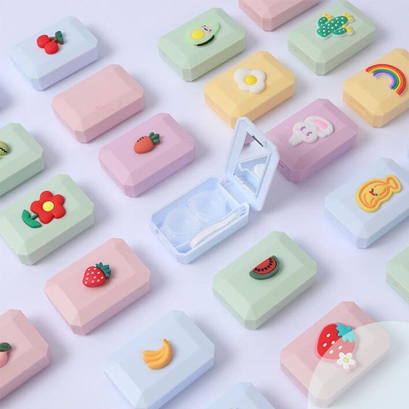 1PCS Cartoon Fruit Contact Lens Cases with Mirror Cute Contact Lens Box Square Women Travel Contact Lenses Kit Container Case