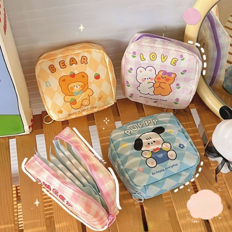 Women Small Cosmetic Bag Set Zipper Girls Mini Sanitary Napkins Makeup Lipstick Bags Travel Earphone Coin Organizer Pouch Bags