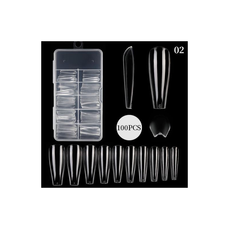 100pcs False Nail Tips Natural Transparent Coffin Coverage False Nail Full Sticker For Nails Manicures Quick Building Mold Tools